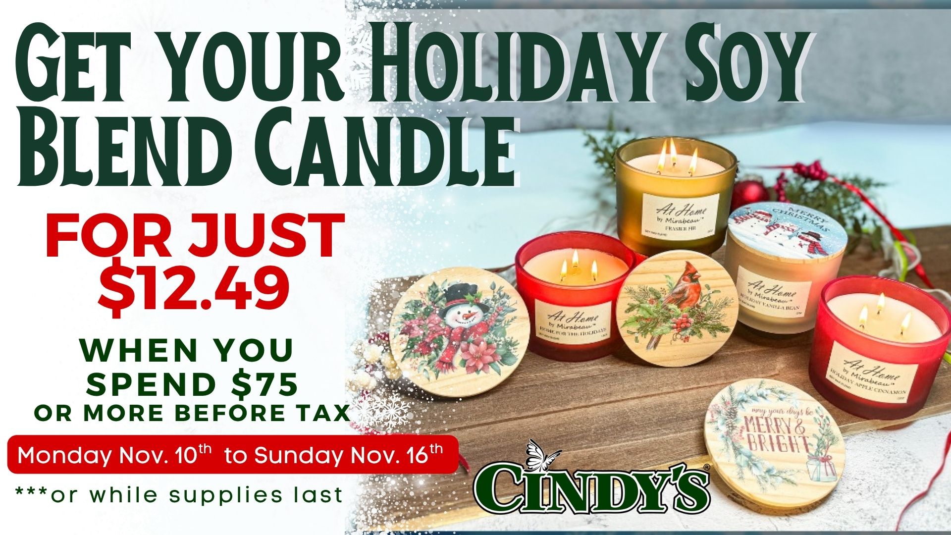 Our Holiday Candle Promo Is Back!It’s one of the most loved and collected items of the season here at Cindy’s! |