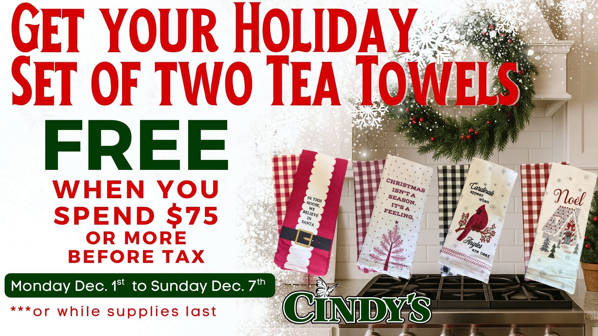 Our Holiday Tea Towel Promo!Tis the season for something cheerful in the kitchen! Receive a FREE set of two Holiday |