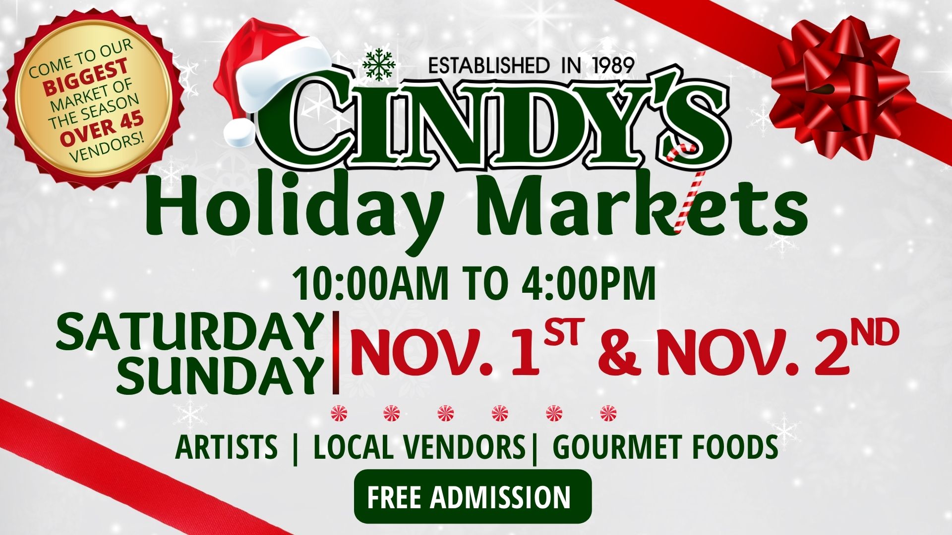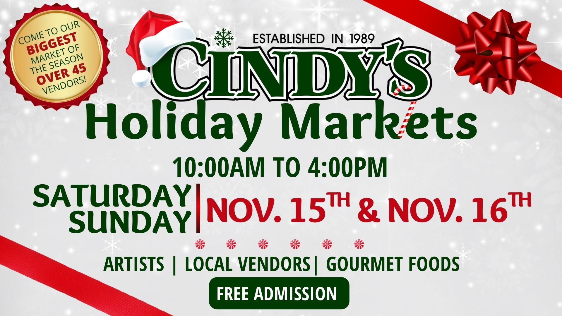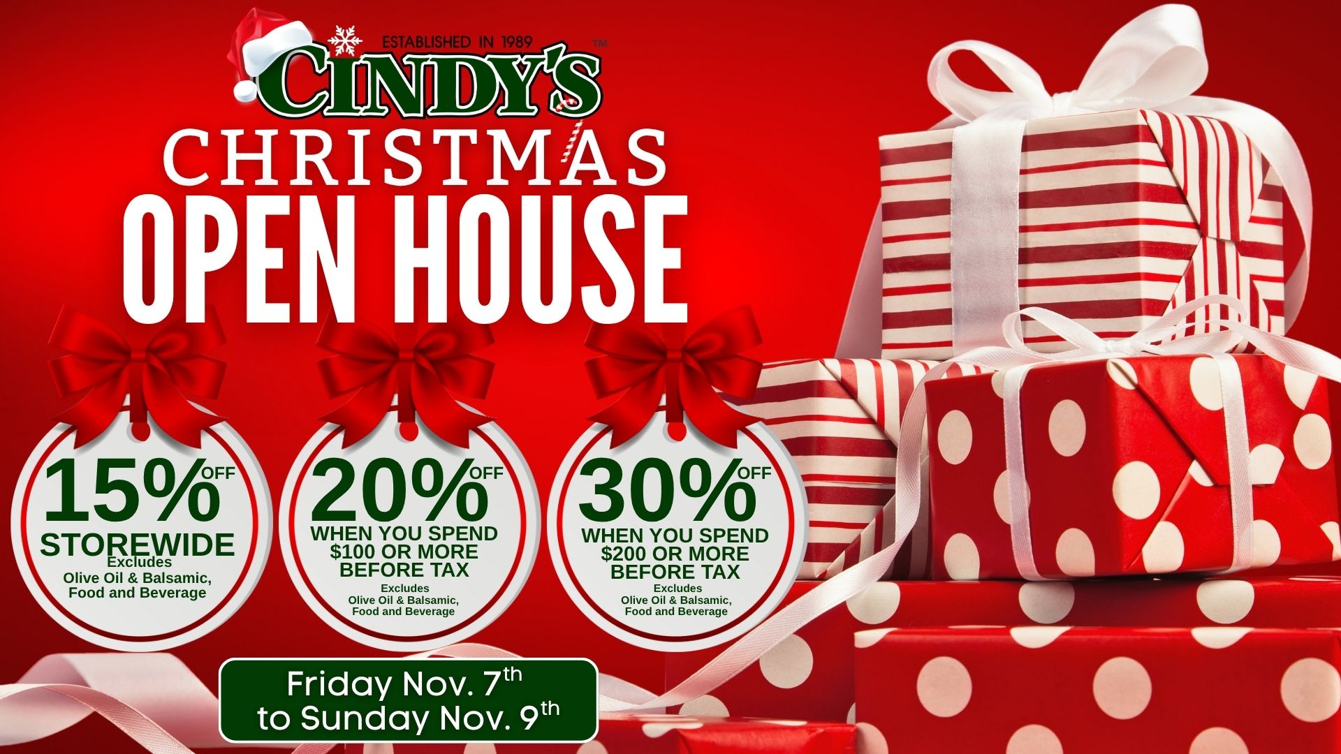 Kick Off the Holiday Season at Cindy’s!Join us for our Annual Christmas Open House — it’s the most magical weekend |