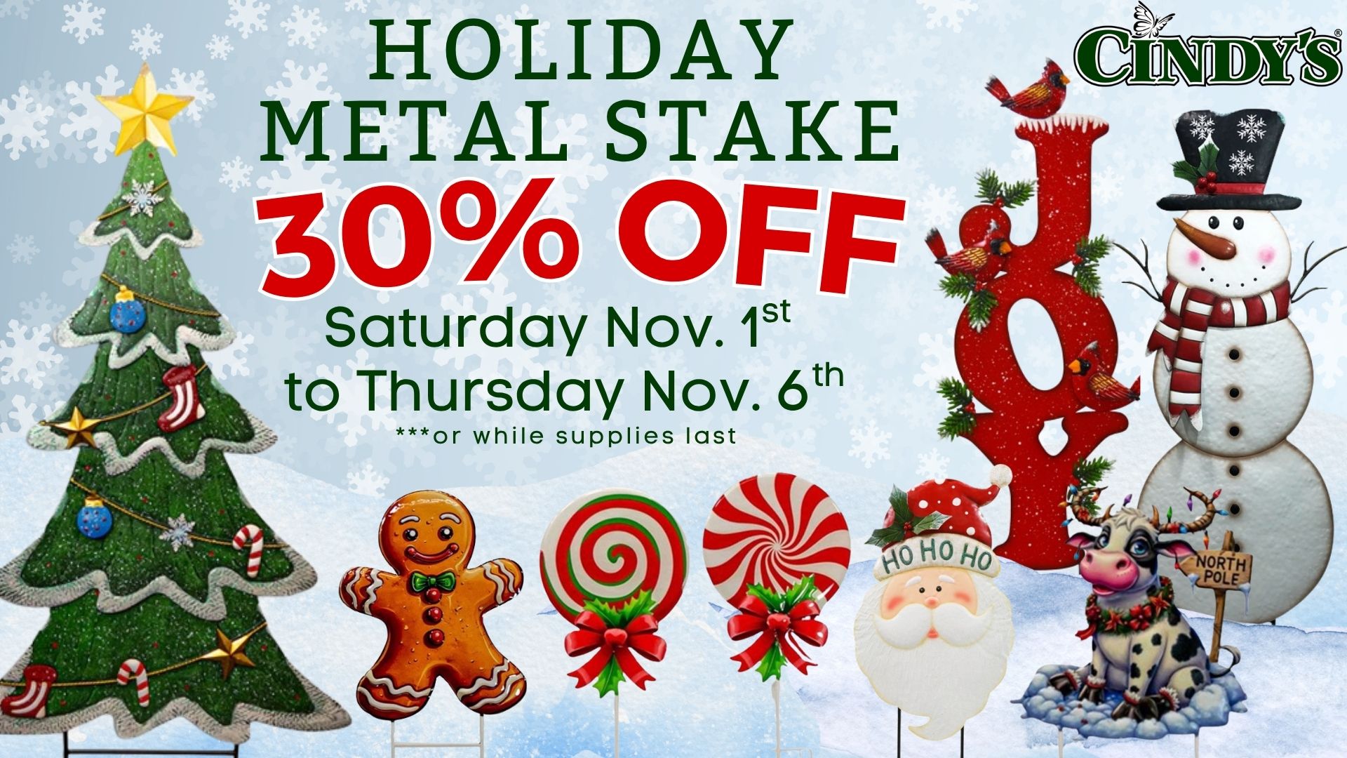 Holiday Metal Stake SaleGet your outdoor spaces ready to shine this season! From November 1st to 6th, all our Holiday