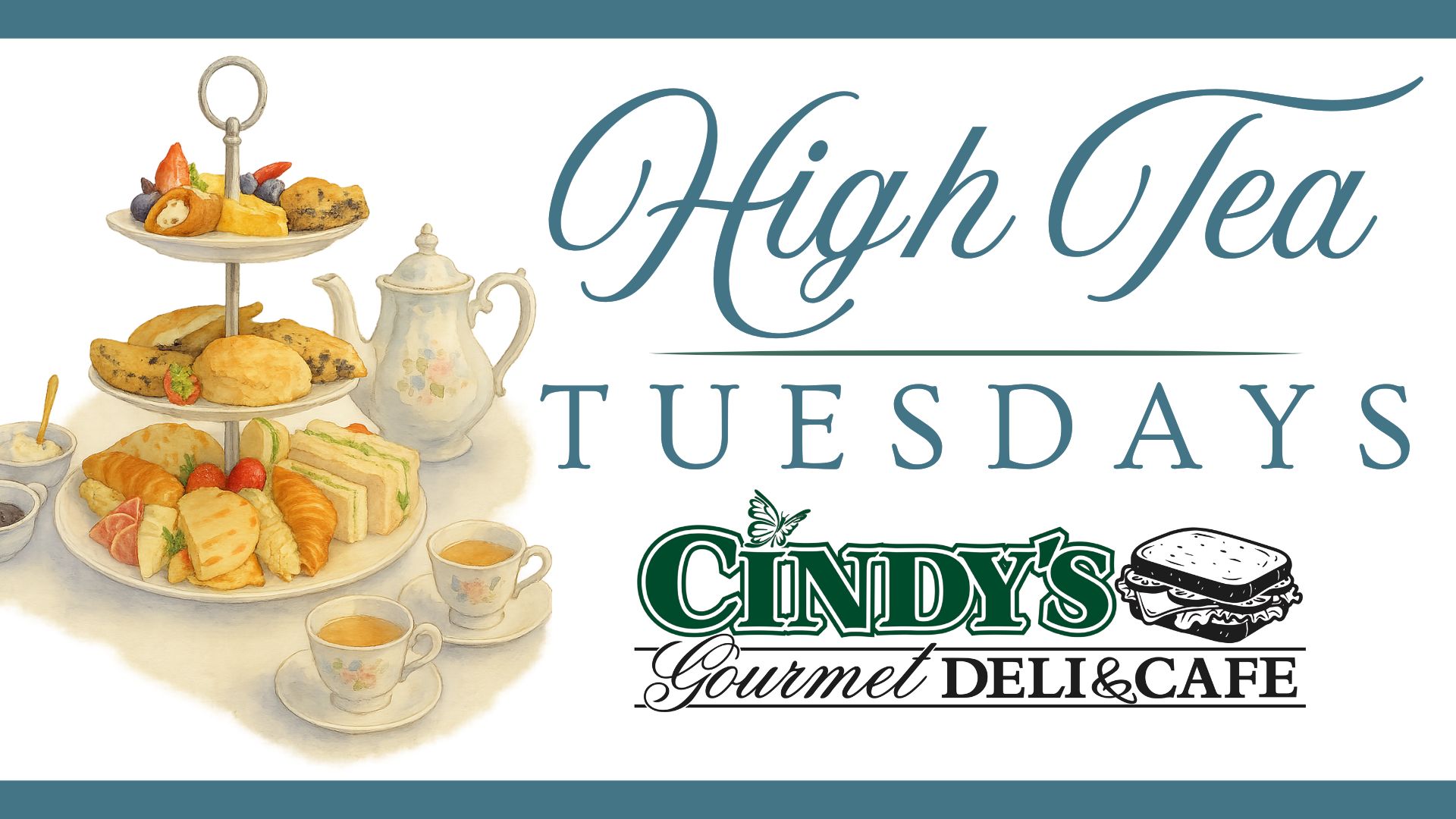 High Tea Tuesdays Step into a little bit of charm every Tuesday afternoon with our High Tea at Cindy’s. Enjoy |